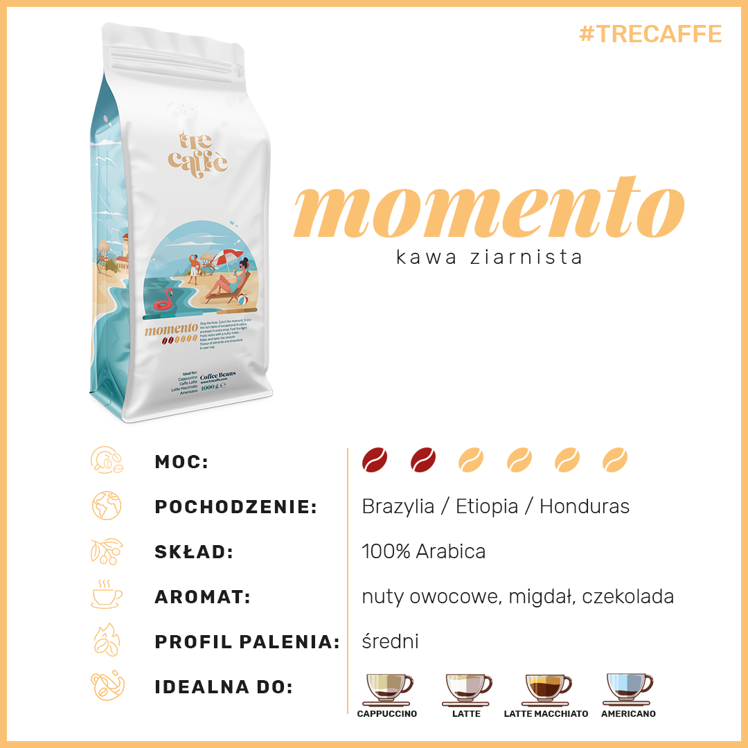 Decydując się na zakup pakietu kawy Momento w większej ilości – 10, 15 lub 20 kg – otrzymujesz nie tylko doskonały smak, ale i wygodę oraz lepszą cenę jednostkową. To propozycja dla tych, którzy potrzebują niezawodnej jakości w większej skali – idealnej do biur, kawiarni, punktów gastronomicznych czy hoteli.